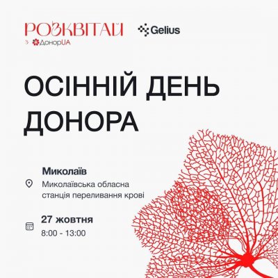 Приходьте 27 жовтня до Миколаївської обласної станції переливання крові та ставайте донором. Ваша допомога дуже потрібна.