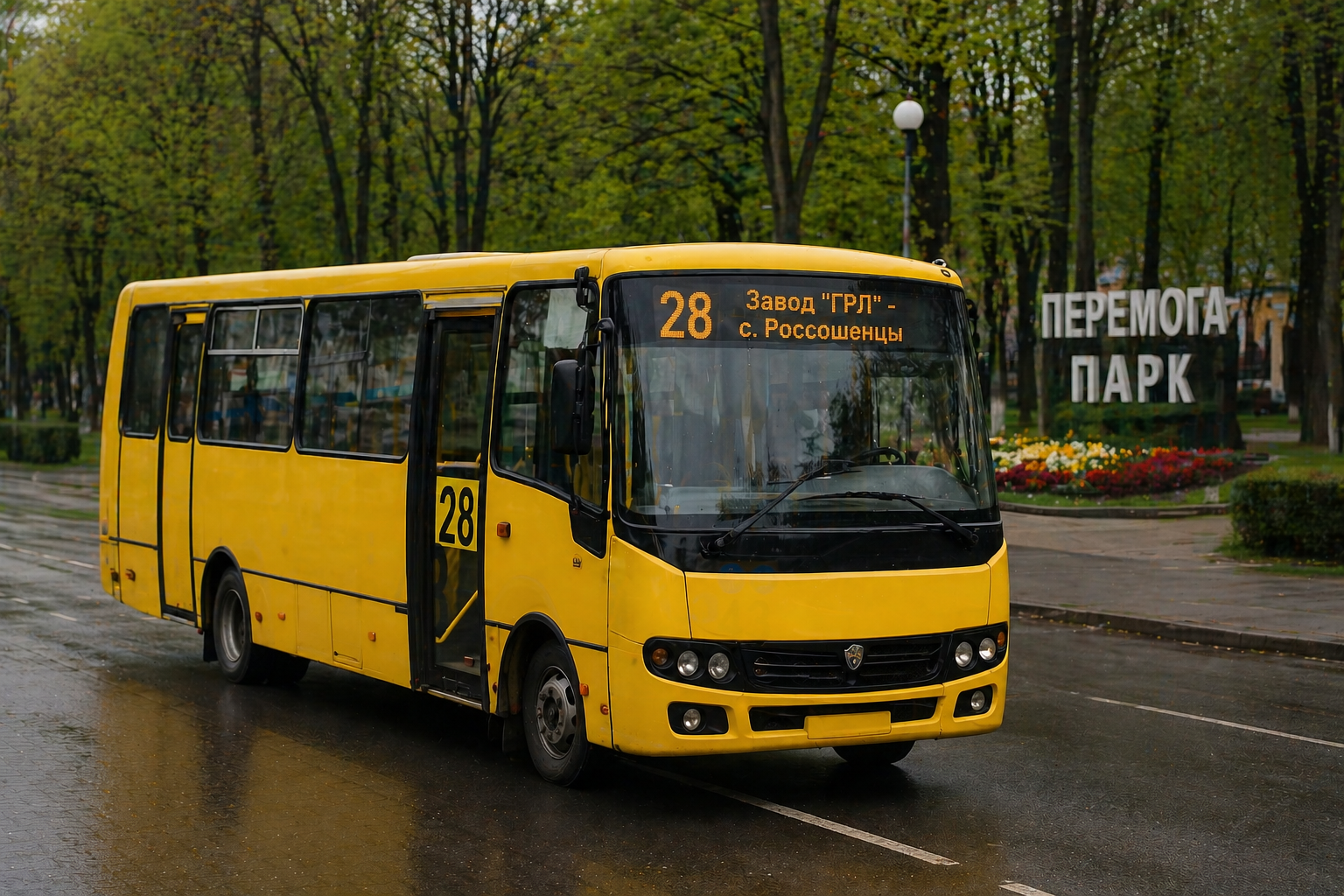 На 28-му маршруті зазвичай велика табличка “ГРЛ – Розсошенці”. Перевіряйте номер на лобовому склі, він не входить до системи “Кільцевого” (маршрути 20/21).