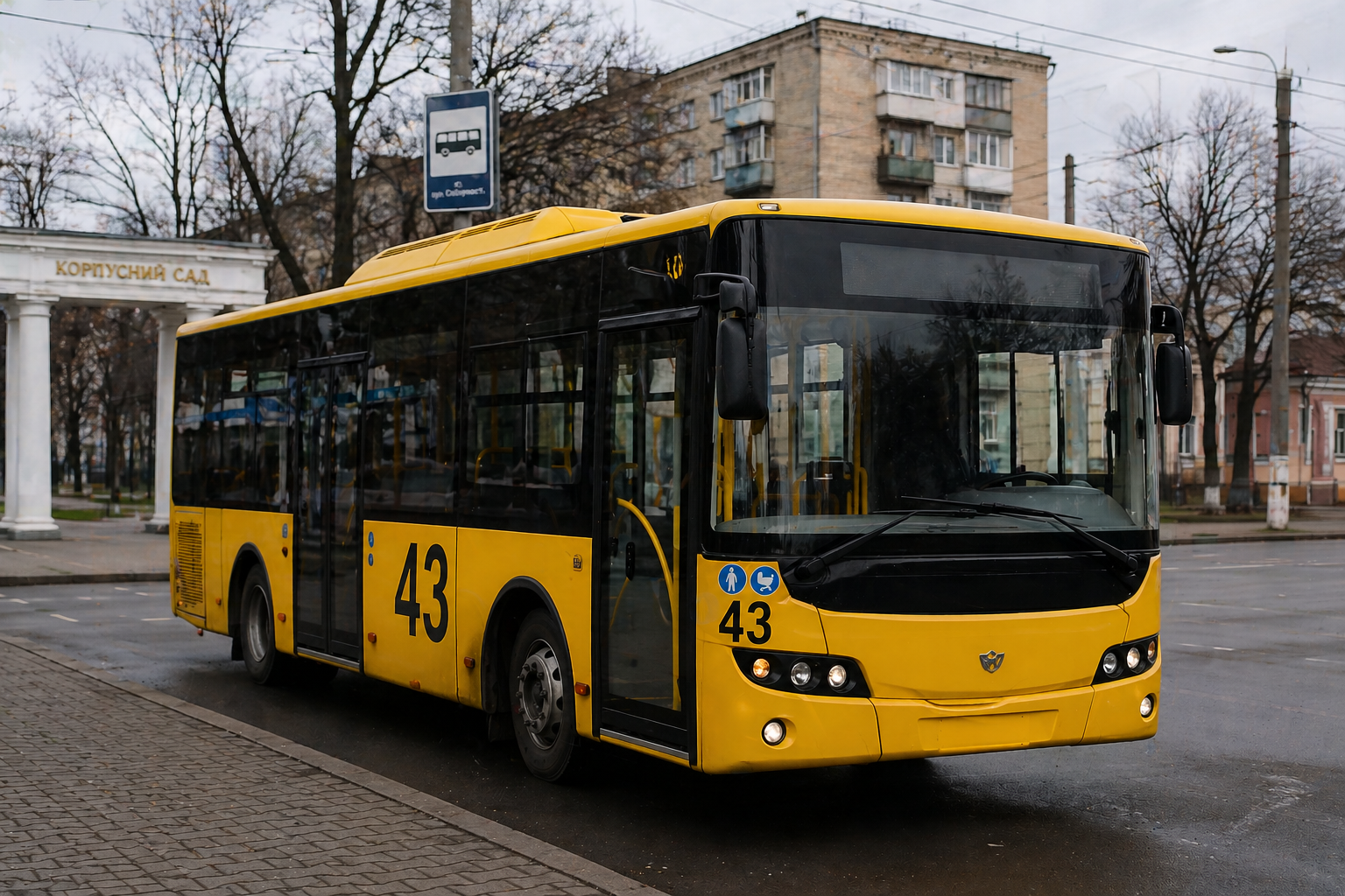 Маршрут №43 з’єднує центральну частину міста з мікрорайоном Огнівка, забезпечуючи швидке перевезення пасажирів між важливими соціальними об’єктами. Рейс обслуговується компанією ТОВ “Делко Компані” за єдиним тарифом 15 гривень, а автобуси курсують з коротким інтервалом у 7 хвилин. Перші виїзди починаються близько 06:00, а завершується рух орієнтовно о 21:30, що робить цей напрямок одним із найбільш затребуваних у Полтаві.