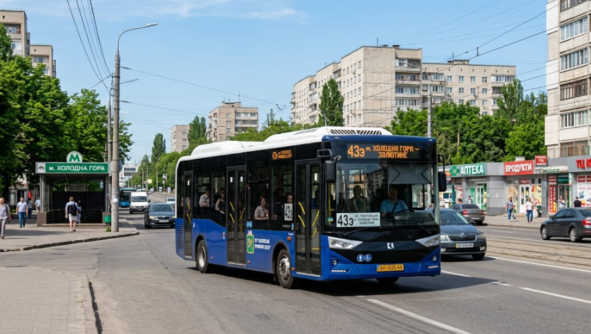 Муниципальная реформа и военный контекст (2021-2026): В 2021 году город начал замену частников на муниципальные автобусы Karsan. После начала полномасштабного вторжения в 2022 году маршрут 43э стал «дорогой жизни» для района. Даже под обстрелами водители продолжали рейсы. Сегодня это полностью муниципальный маршрут с бесплатным проездом, который обслуживается современным автопарком КП «Салтовское депо», адаптированным под современные реалии Харькова.