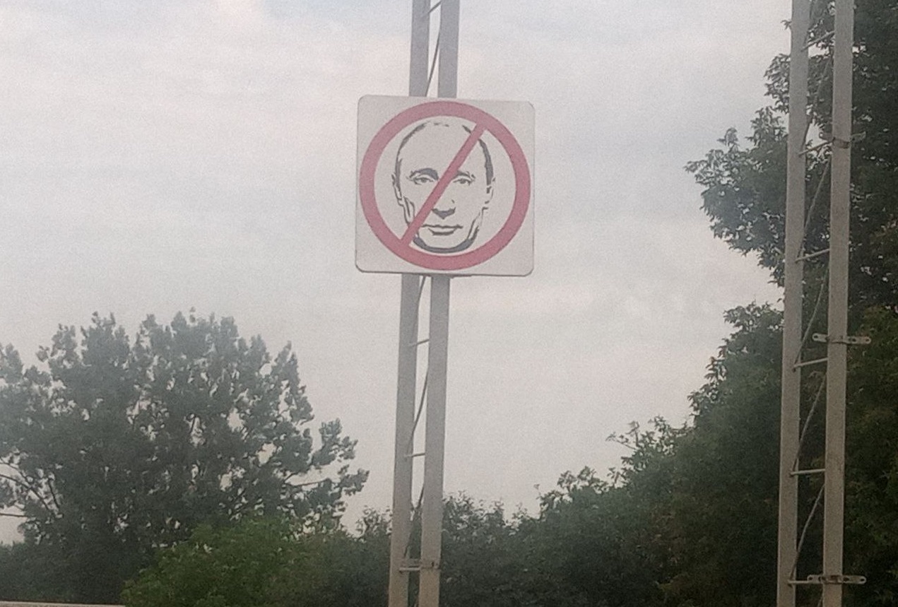 Жителі Макарова розповіли, що вздовж доріг району активісти встановили спеціальні знаки з обличчям Путіна