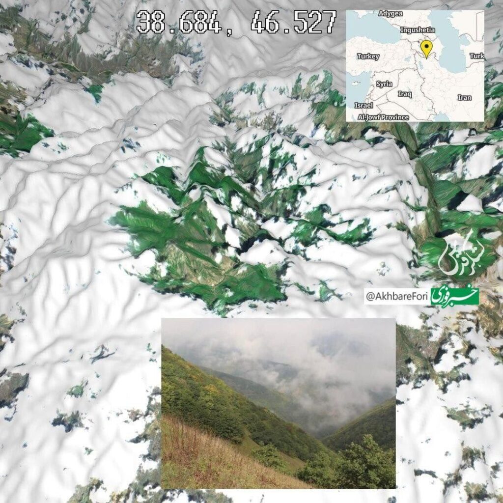 Супутниковий 3D-знімок передбачуваного місця аварії вертольота президента Ірану публікують у Мережі.