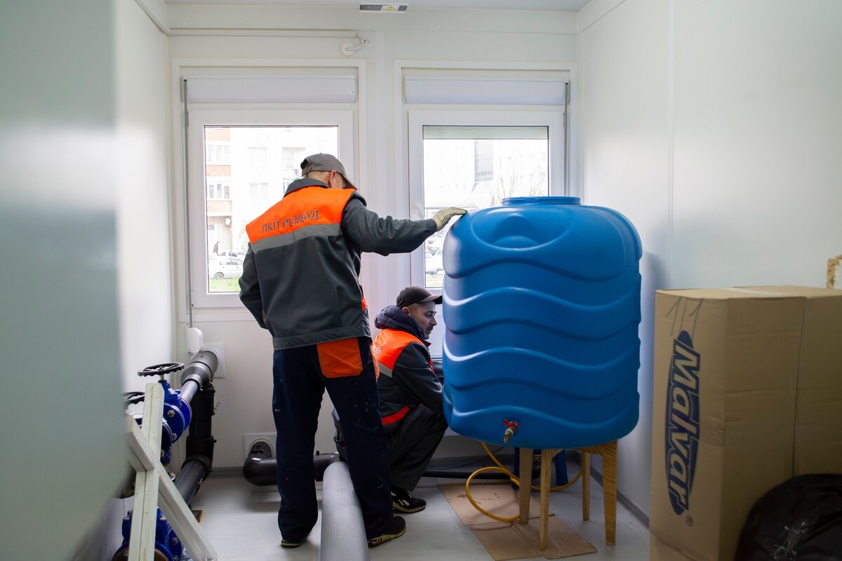 Крім того, у всіх прихистках облаштовані резервуари для питної води. У містечку на Червоної Калини є бак на 500 літрів і ще тонна води в запасі. На вул. Тернопільській встановлюють ємність на 500 л, а на складі підприємства зберігаються додаткові резервуари, які можна оперативно задіяти у разі потреби.