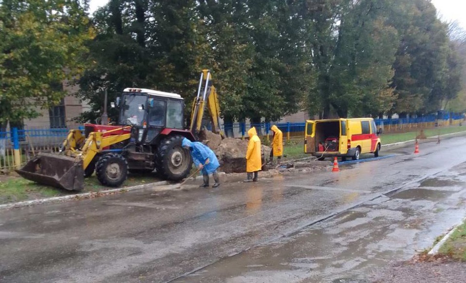 Аварія сталась на вулиці Цвіткова. Незважаючи на дощ, працівники водоканалу розкопують місце ушкодження водопровідної траси. Як зазначив мер, з Києва мають привезти адаптор, за допомогою якого спеціалісти вирішать проблему.