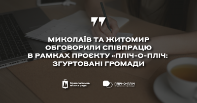 Представники Миколаївської міської ради та Житомирської міської ради провели онлайн-зустріч, під час якої обговорили співпрацю у рамках проєкту «Пліч-о-пліч: згуртовані громади».