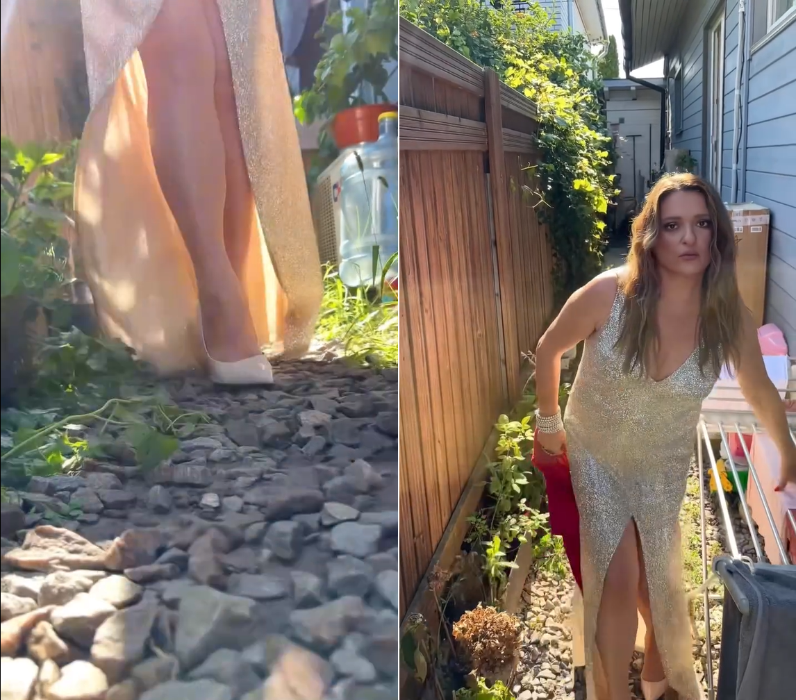 Якщо ви думаєте, що мама двох доньок, повертаючись додому, стає суворою вихователькою, то дуже помиляєтеся. Навіть удома Наталія Олексіївна знаходить привід для усмішок. Якось зірка вирядилася у вечірню сукню та взула черевички на високих підборах і нумо гуляти довкола свого будинку.