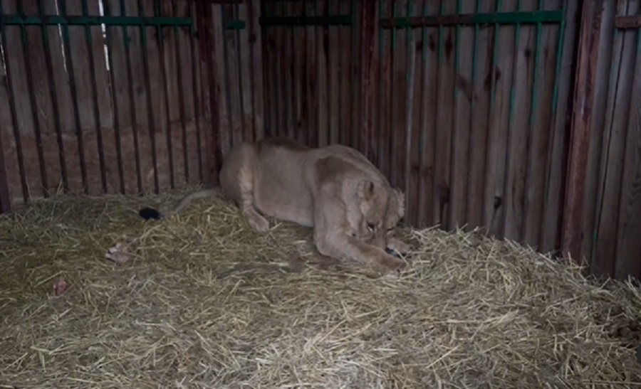 Сьогодні ранок був зовсім не добрим, наша левиця Юна потрапила у тяжку ситуацію. В результаті збиття ракети і падіння близько 300 метрів від її вольєра вона отримала серйозну контузію, що призвело до повної втрати координації.