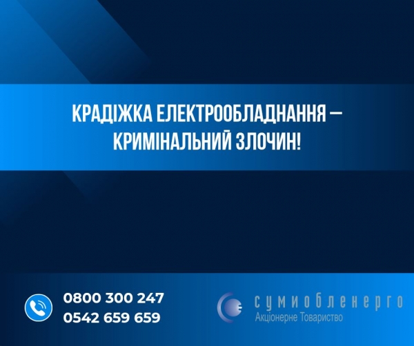 Викрадаючи будь-яке електрообладнання, вони шкодять усім жителям Сумщини. Оскільки енергетична система нашої області перебуває в складному становищі через атаки армії РФ.