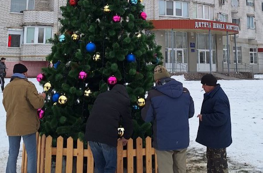 У Глевасі на площі біля Дитячої школи мистецтв встановлюють новорічну ялинку