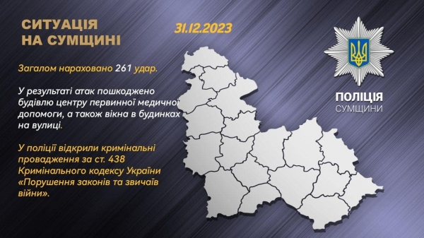 На Сумщині внаслідок обстрілів пошкоджено будівлю центру первинної медичної допомоги 9:48 / 31 грудня 2023 Новини Суспільство