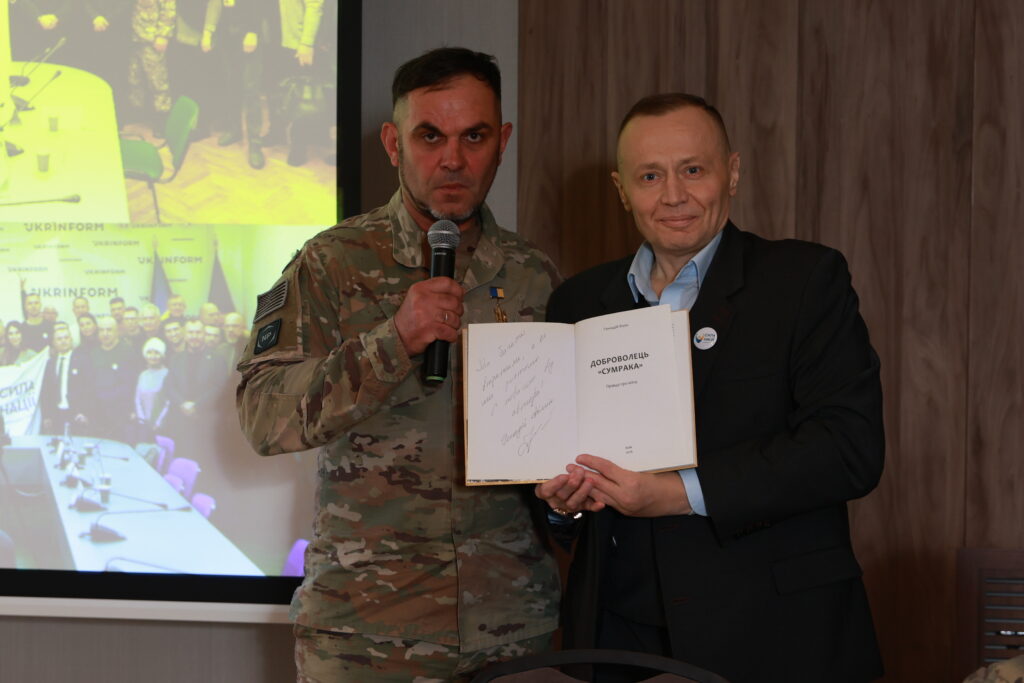 Також від імені ветеранів виступив Народний Герой України, автор книги «Доброволець «Сумрака». Правда про війну» Геннадій Фімін, який також висловив впевненість у тому, що політики нарешті будуть не лише декларувати правильні гасла і підбадьорювати ветеранів, але й спрямують всі можливості для соціальної адаптації колишніх бійців, інтеграції їх до процесів відновлення та відбудови держави, її економіки та господарства.