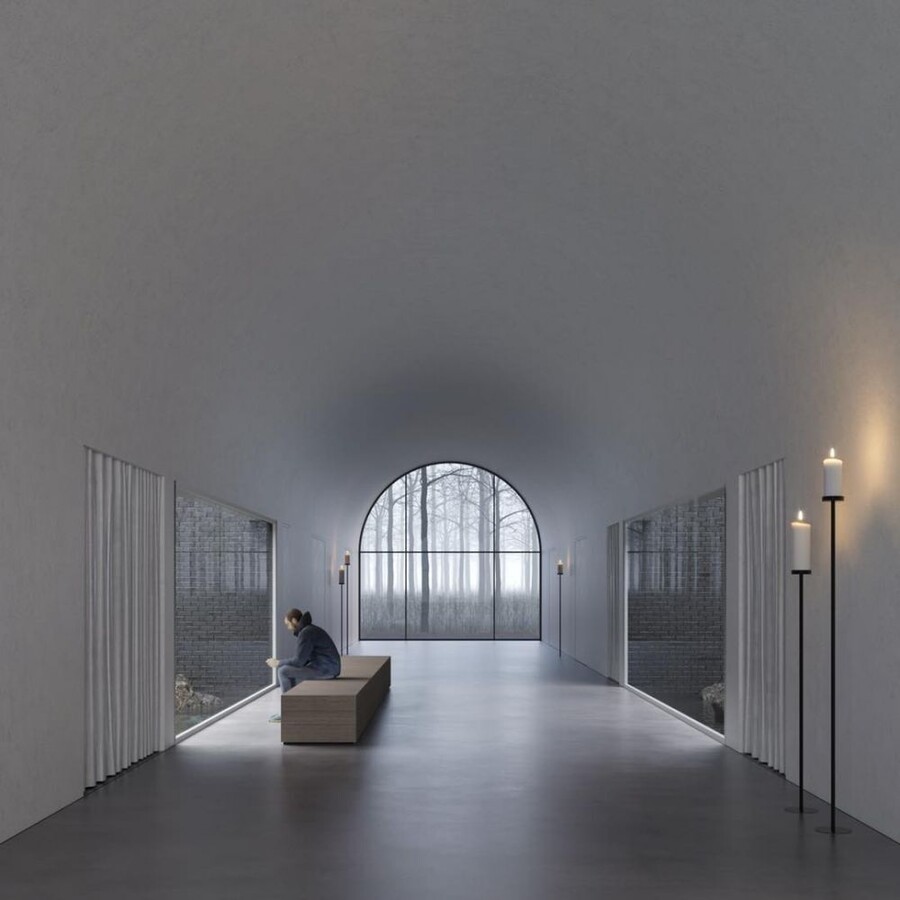 Проєкт крематорію створили архітектори з Маріуполя, які зараз працюють у Берліні. Їхня концепція — це символічна архітектура, у центрі якої водяний басейн, що уособлює ріку життя та перехід між світами.