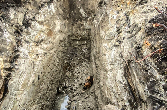 Перехожі почули жалібний гавкіт, що долинав із глибокої ями на відкритій території. Коли люди зазирнули всередину, вони побачили переляканого собаку, який кликав на допомогу.