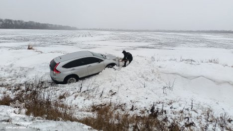 Сьогодні на автодорозі регіонального значення Р-44 (Суми-Путивль-Глухів), поблизу села Постольне, інспектори відділу безпеки дорожнього руху побачили транспортний засіб Honda, який з’їхав з дороги та потрапив у снігову пастку.