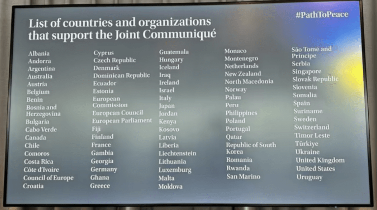 Про це свідчить оновлений список підписантів, який опублікував сайт МЗС Швейцарії На сайті зазначається, що список було оновлено 17 червня.