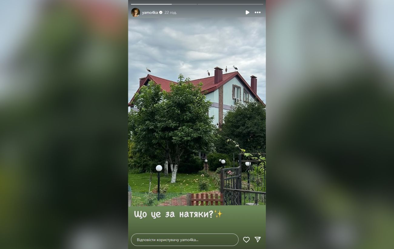 Яна Глущенко показала, як її зустрічають лелеки на даху двоповерхового будинку під Києвом