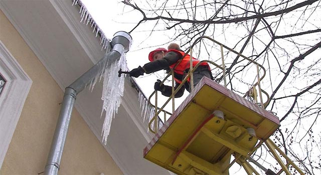 Сьогодні зокрема у місті працює 35 бригад, до яких залучені альпіністи та автовишки, і у планах очистити ще понад 200 дахів. Однак, на жаль, через погодні умови, на тих дахах, які вже чистили, знову наростають бурулі. Тому мешканців закликають бути максимально уважними і обережними.