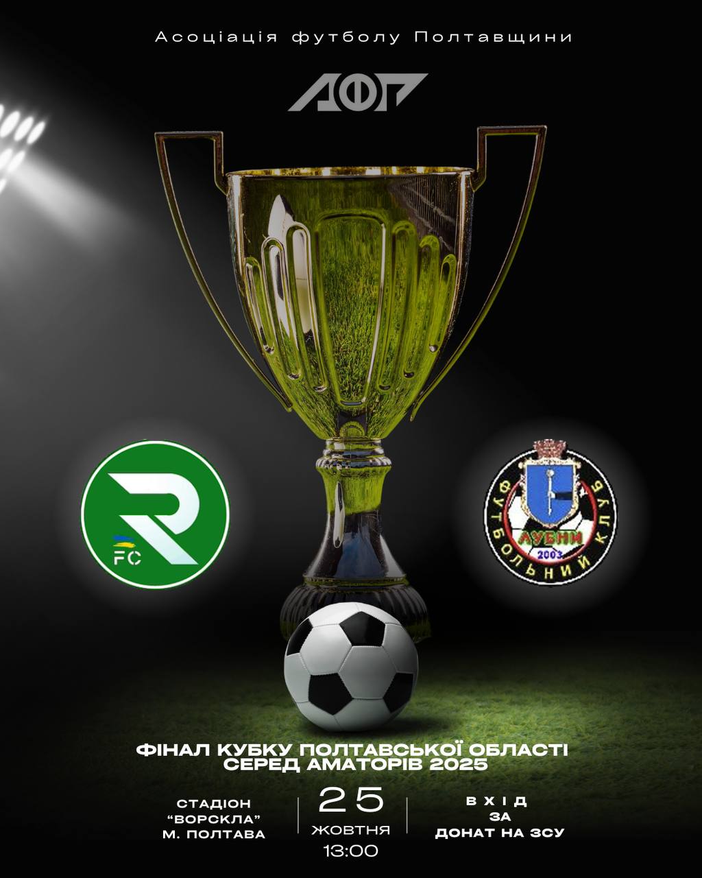 25 жовтня у Полтаві на стадіоні «Ворскла» ім. Олексія Бутовського відбудеться фінальний матч Кубка Полтавської області з футболу. У боротьбі за трофей зійдуться «Рокита» та «Лубни».