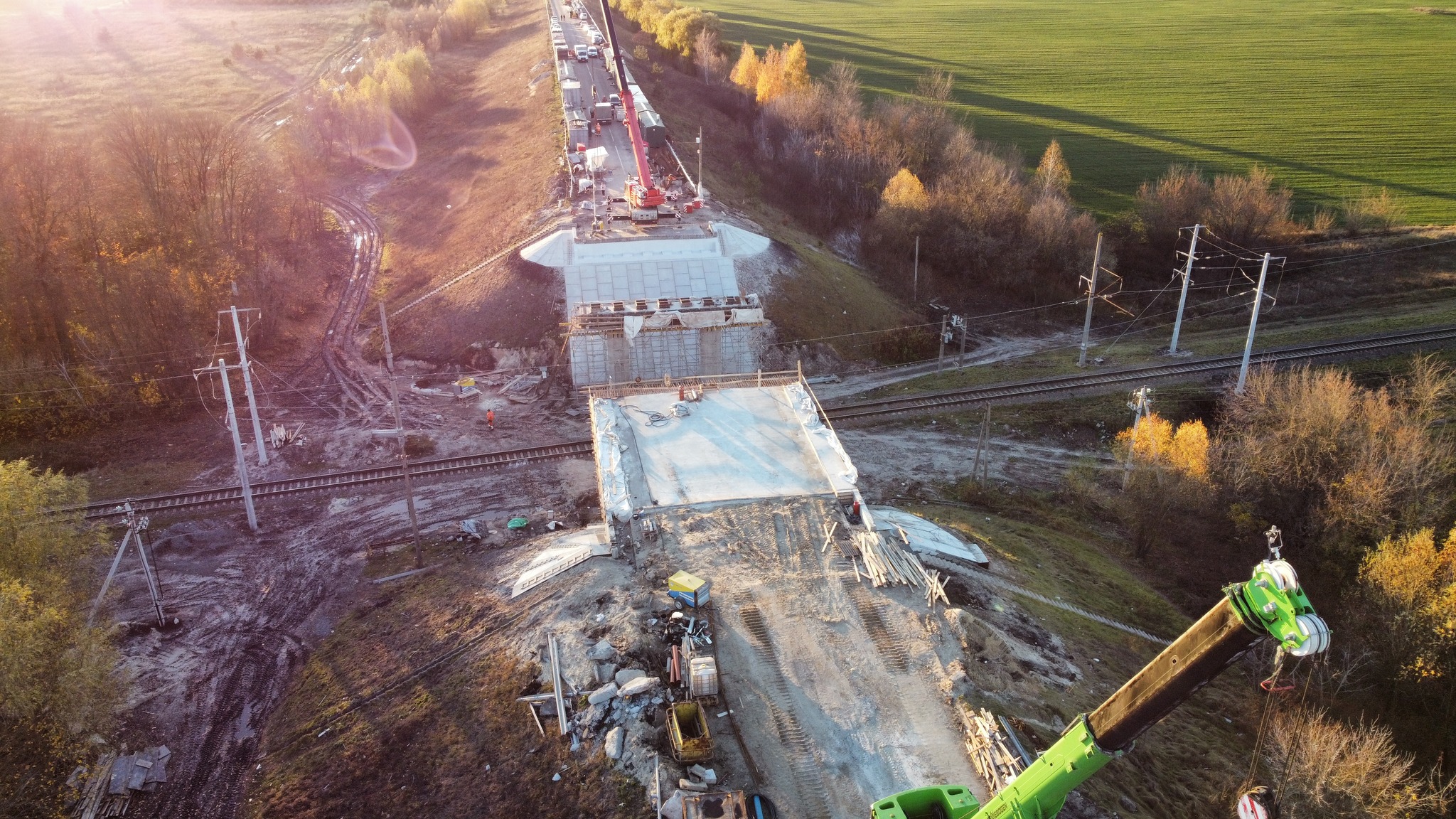 За даними відомства, відбудова мосту через залізницю триває поблизу Ніжина. Зараз будівельники зводять прогонову будову, проводять монтаж балок, в’яжуть арматуру та заливають бетоном монолітну плиту. Після цього на мосту будуть влаштовувати покриття. Міст був зруйнований під час активних бойових дій у лютому – березні 2022 року, коли російські окупанти зайшли на територію Ніжинського району і намагались далі наступати на Київ. Відновлення шляхопроводу дозволить забезпечити транспортне сполучення центральних районів Чернігівщини з громадами області, а також із Київською та Сумською областями. Це розвантажить місцеві дороги від транзиту вантажного та пасажирського транспорту.