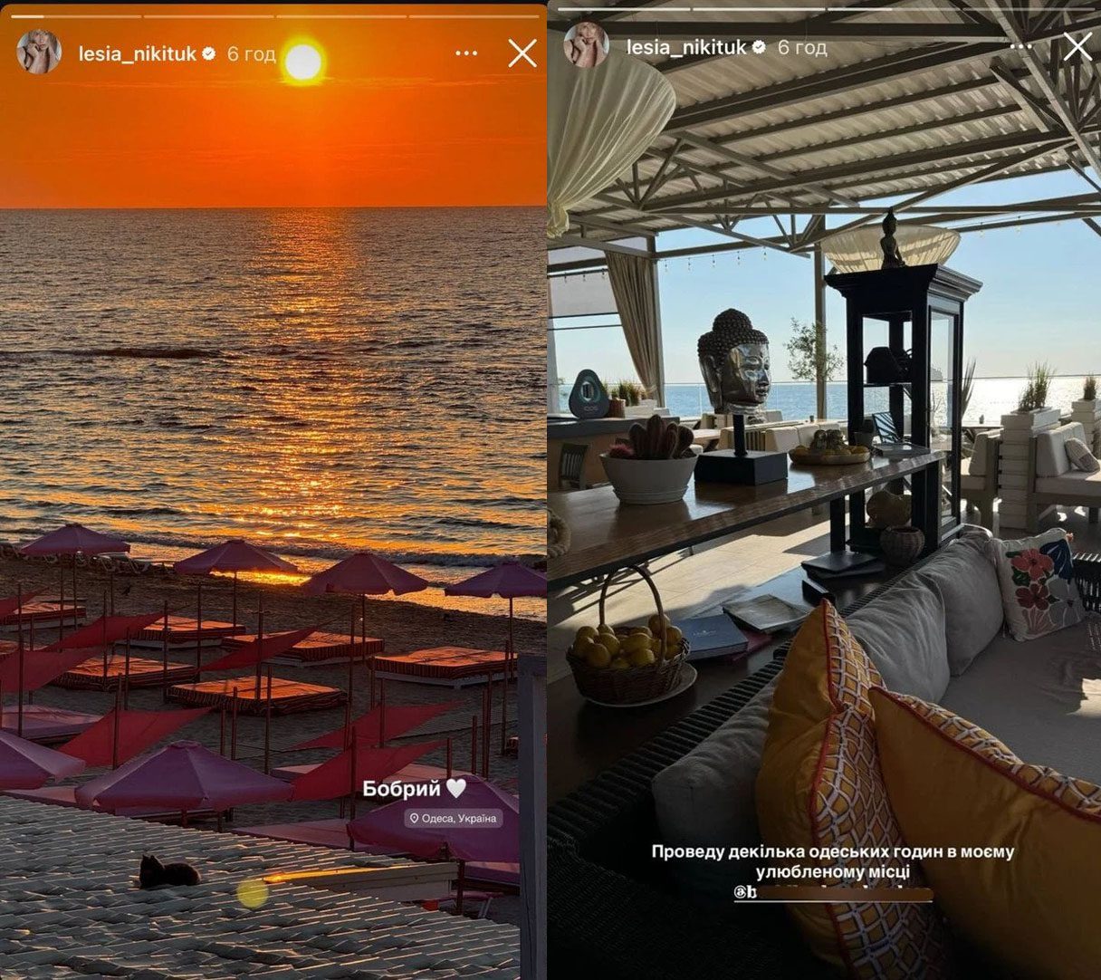 Це не перші Сторіз, в яких знаменитість ділиться враженнями від відпочинку в Одесі. За 2 дні до того Нікітюк демонструвала чарівний вид на пляж з номера свого готелю. А ще показала фото з 1-місячним сином.