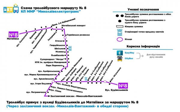 Сьогодні, 30 травня, у зв’язку з проведенням ремонтних робіт на вул. Верхній, тролейбуси маршруту №8 тимчасово курсуватимуть по вул. Силікатній в обох напрямках.
