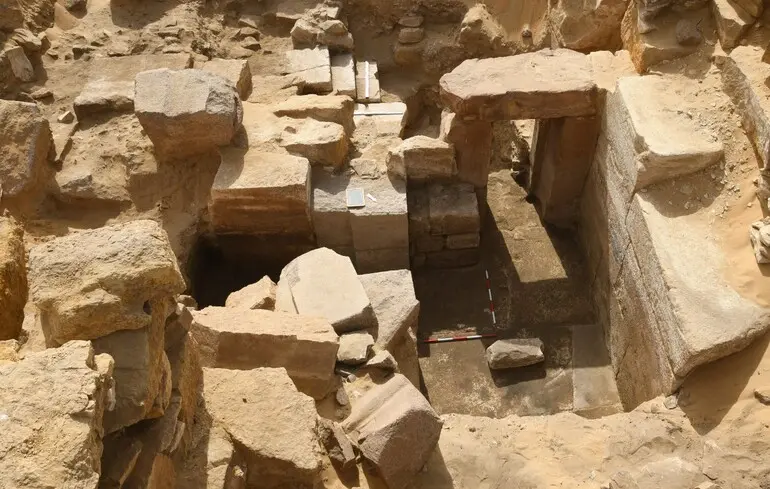 Під час розкопок археологи виявили залишки вхідного портика з колонами та десятки декоративних блоків з написами. Серед них — згадки про фараона Ніусерра, який правив приблизно між 2420 і 2389 роками до н. е. і був ініціатором будівництва храму.