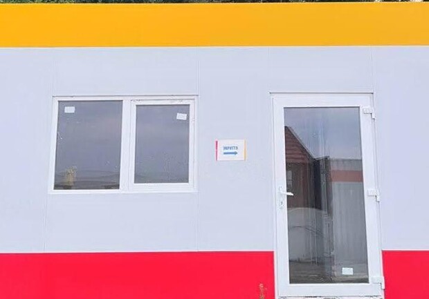 Так, речь идет о сооружении контейнерного типа в цветах фдага Одессы со стеклянной дверью и окном, на котором написано “укрытие”.