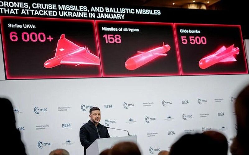 За словами Зеленського, лише у січні Україна відбила атаки близько 6000 дронів, понад 150 ракет та понад 5000 керованих авіабомб.