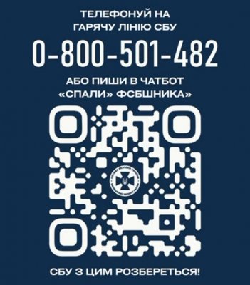 Якщо ворог вербує на вчинення підпалів, диверсій чи терактів — відразу повідомляйте в чат-бот СБУ «Спали» ФСБшника» https://t.me/spaly_fsb_bot