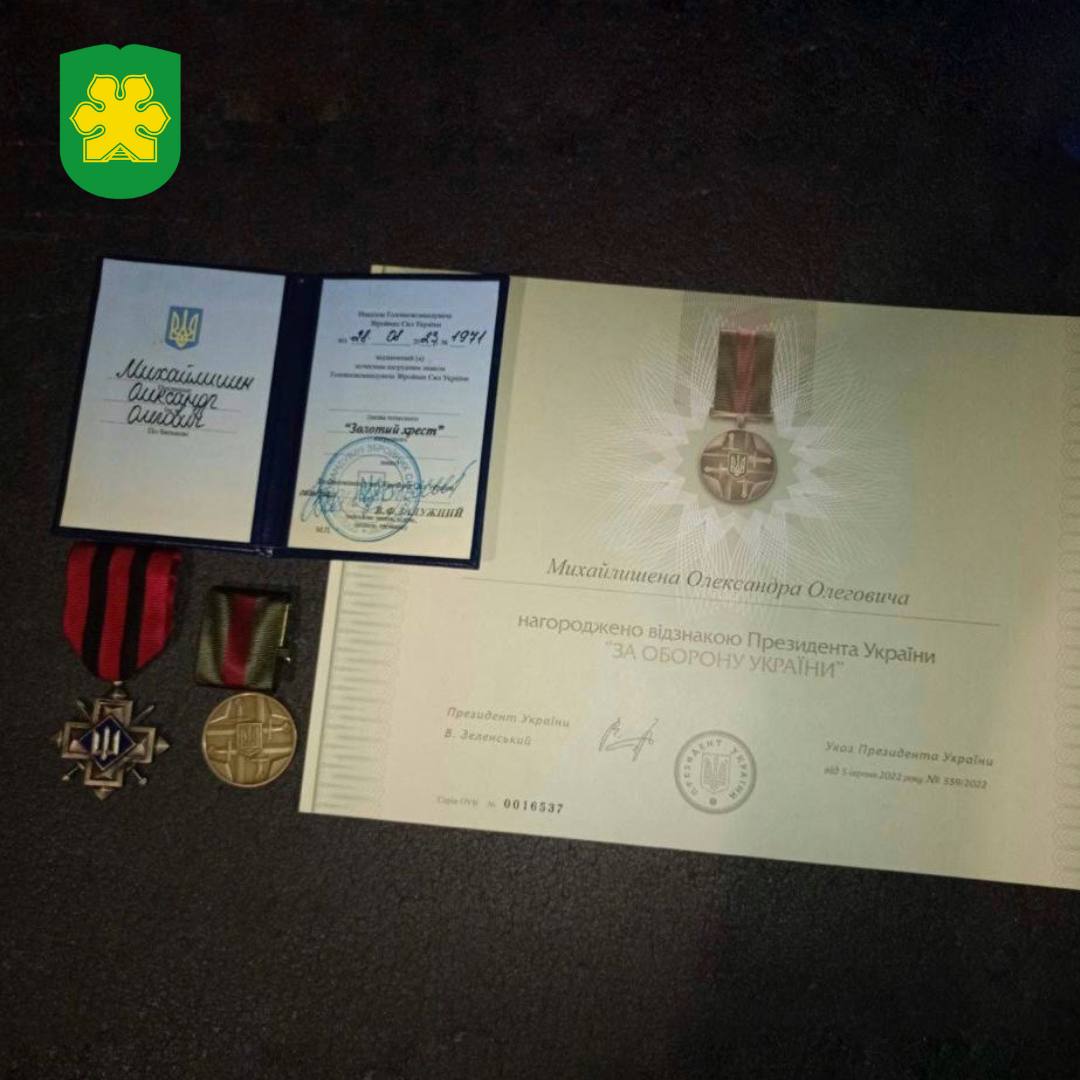 В серпні цього року Олександр Михайлишен на позивний “Змій” отримав 2 нагороди: відзнаку “За оборону України” від Володимира Зеленського та нагрудний знак “Золотий хрест” від Валерія Залужного.