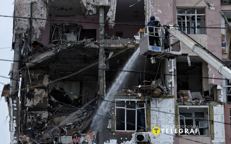 В Шевченківському районі влучання БпЛА в верхній поверх 10-поверхового будинку. Попередньо є пожежа.