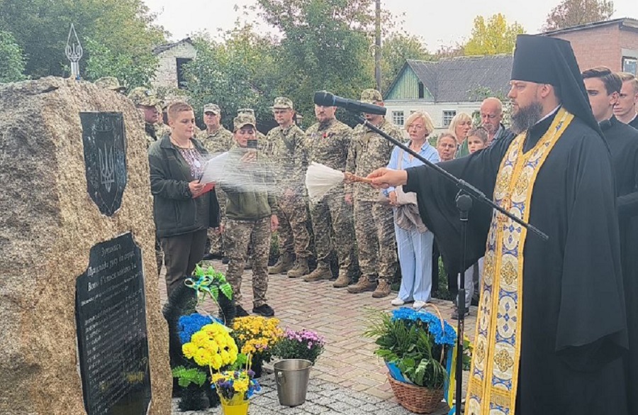 Владика Агапіт, секретар Київської Митрополії Православної церкви України, освятив пам’ятний знак та провів молебень за полеглих. Усі присутні вшанували їх пам’ять молитвою та хвилиною мовчання.
