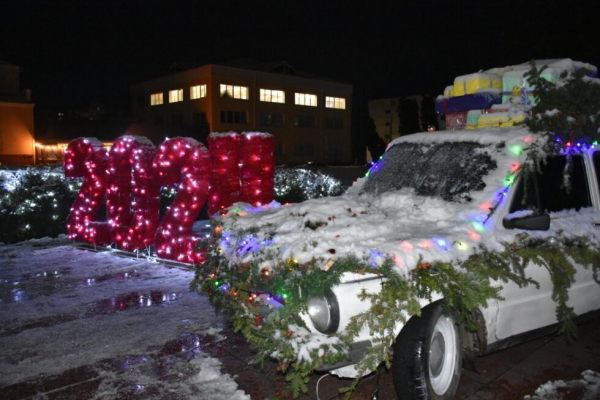 Святково вбрана ялинковими гілками машина з подарунками на даху і мотивуючим написом на лобовому склі “Разом до Перемоги!” стала головною родзинкою в ансамблі новорічних декорацій, розташованих у серці Глухова. 22 грудня вона засяяла яскравими вогниками, що додало особливої атмосферності оформленню. Зробити фото на пам`ять підходять чимало жителів та гостей міста.