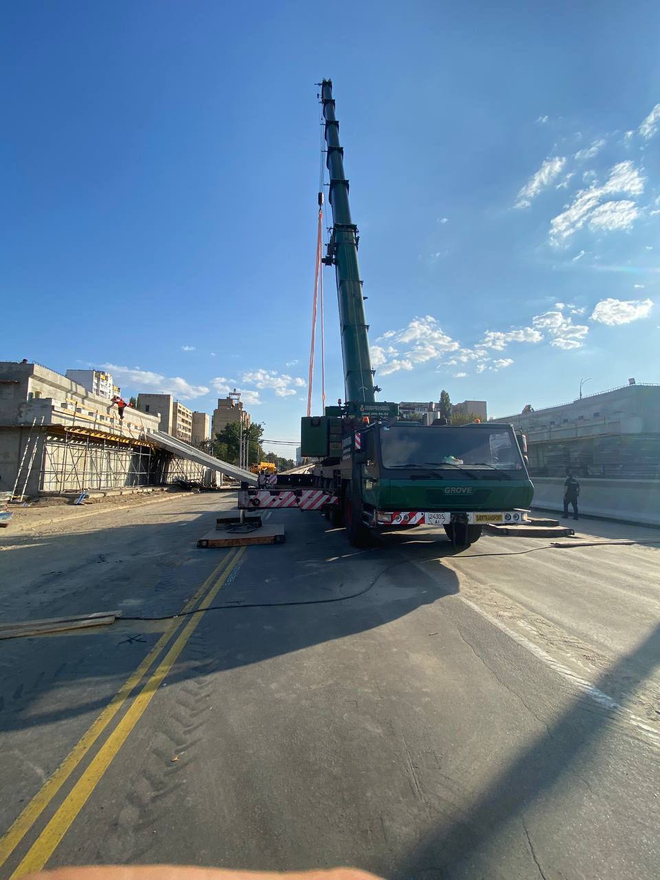 “На вул. Олександр Довженка під час робіт з реконструкції Дегтярівського шляхопроводу сталася надзвичайна ситуація — під час монтажу стався обвал балок. Причини з’ясовують фахівці, які вже на місці”, – йдеться в повідомленні.