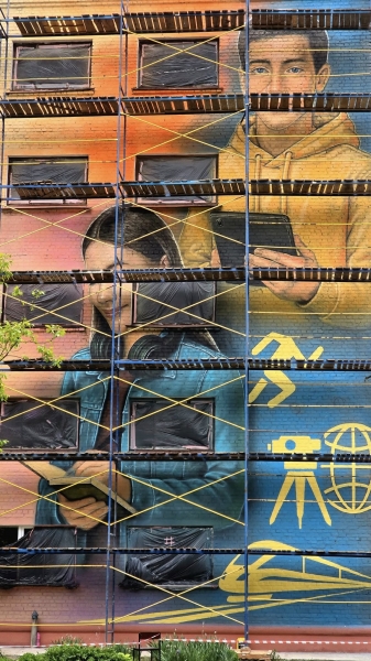 На стіні Конотопського класичного фахового коледжу СумДУ створюється новий стінопис (мурал) з нагоди ювілейного 135-річчя закладу.