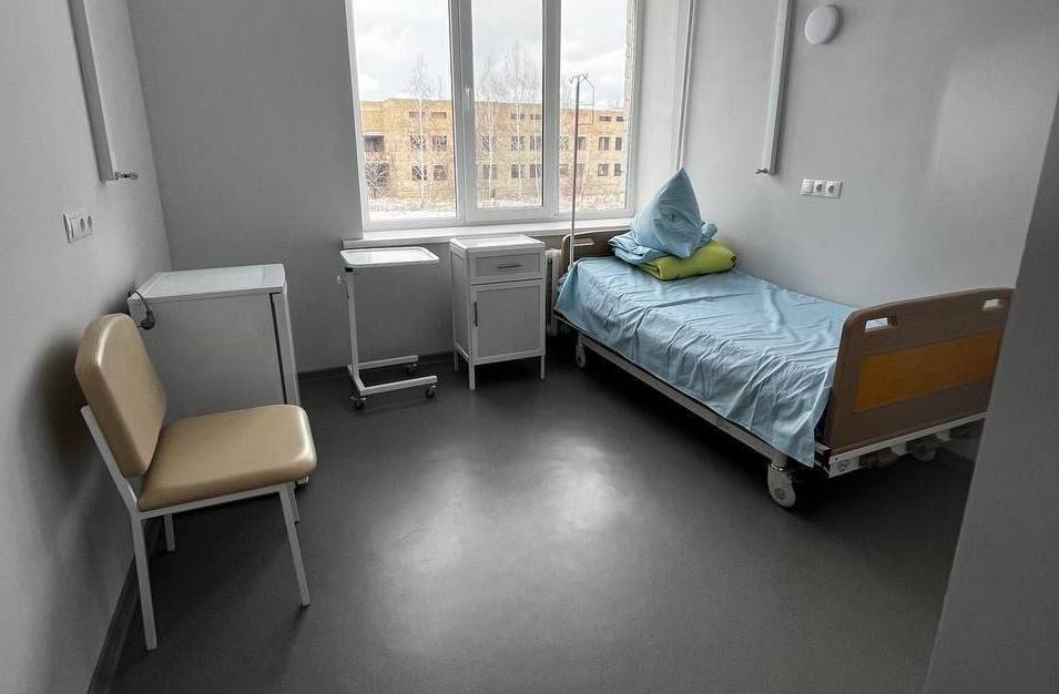 Корпус Макарівської лікарні продовжують ремонтувати після значних пошкоджень, яких приміщень зазнало внаслідок обстрілів