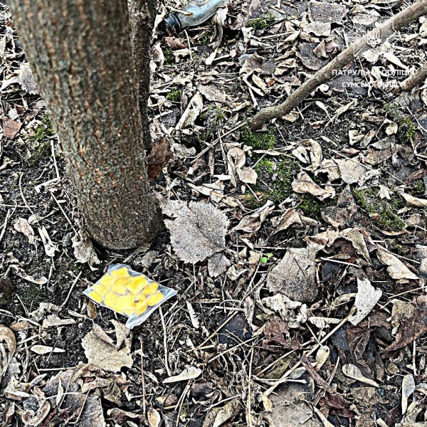 На місце події патрульні викликали слідчо-оперативну групу Сумського районного управління поліції. Серед предметів, що викинув громадянин, була радіостанція, зіп-пакет з кристалічною речовиною, схожою на наркотичну, та чималий зіп-пакет з 20 згортками з аналогічною речовиною.
