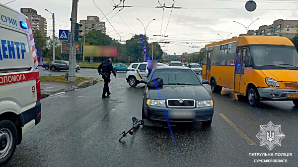 Охоронці порядку оперативно прибули та огородили місце автопригоди. Попередньо, 40-річна жінка, керуючи автомобілем Skoda Octavia, під час повороту праворуч не надала переваги у русі та допустила наїзд на чоловіка, який перетинав проїжджу частину по регульованому пішохідному переходу на електросамокаті.